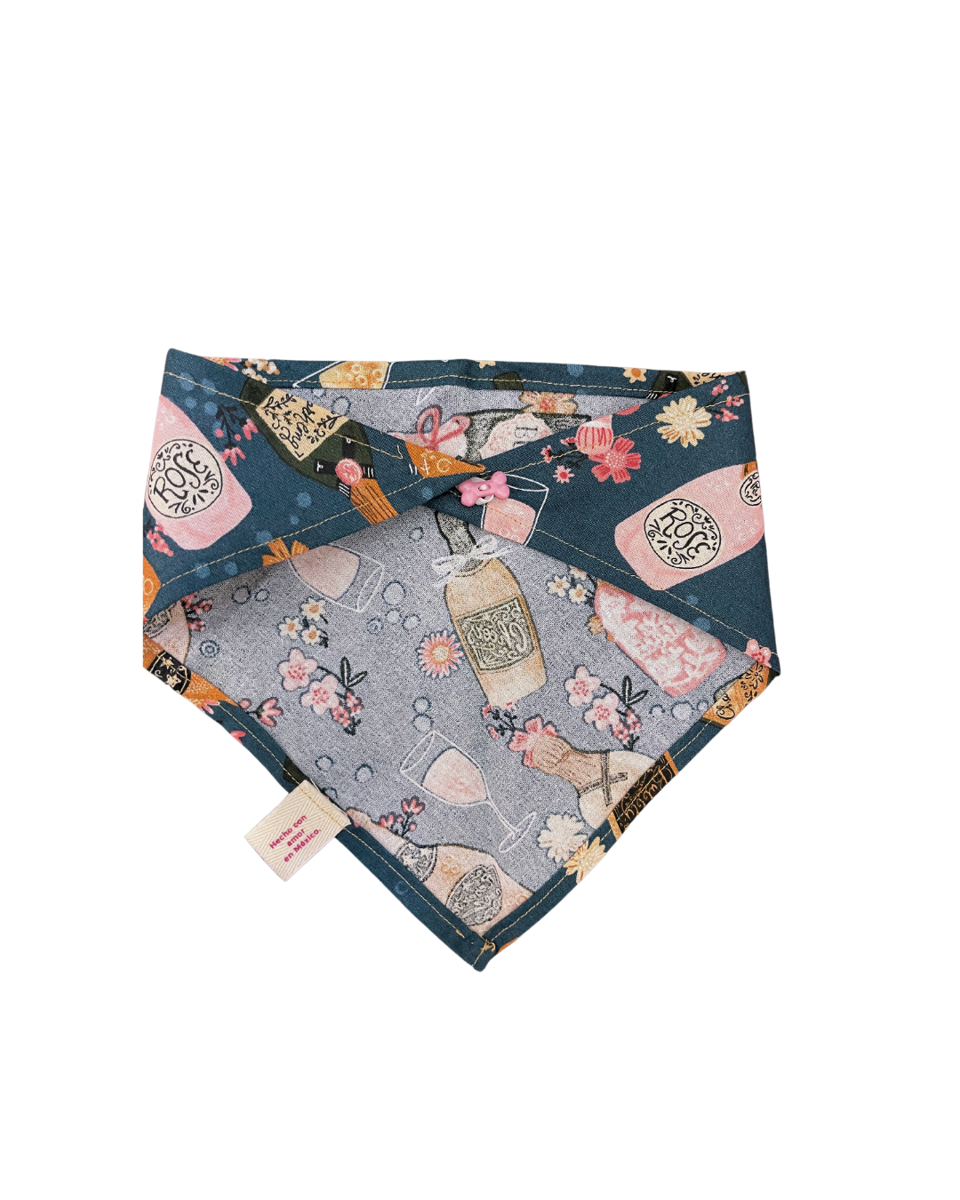 • Design: Featuring a whimsical pattern of vintage-style champagne bottles with a feminine touch, this bandana brings a pop of glamour and fun to your dog’s wardrobe. Perfect for special occasions or adding a dash of flair to everyday outings.